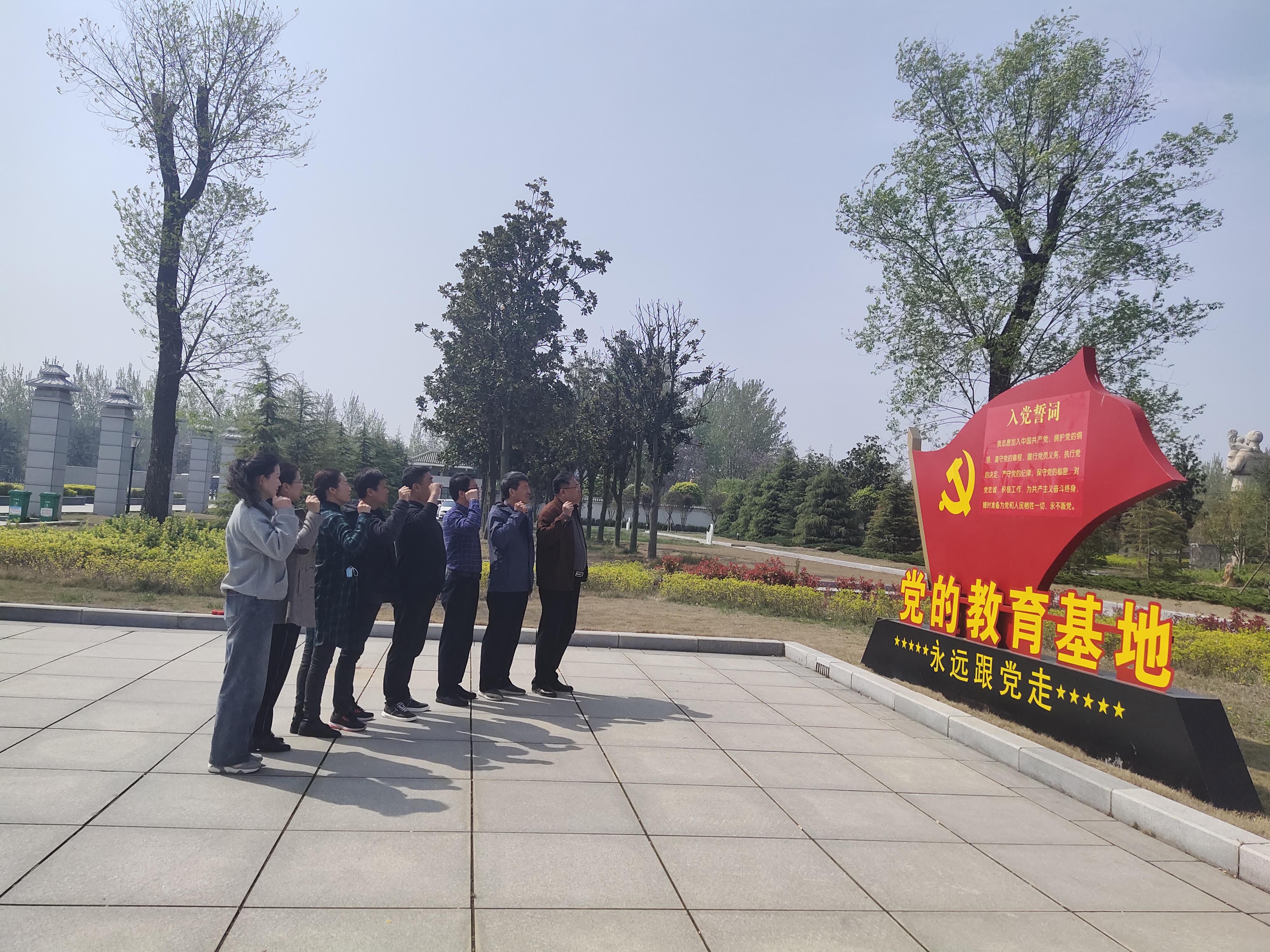 在紀(jì)念碑前,全體黨員共唱國歌后站立默哀,并向革命先烈敬獻(xiàn)花籃。面對黨旗,全體黨員莊嚴(yán)地舉起右手、握緊拳頭,重溫入黨誓詞,堅(jiān)定“不忘初心、牢記使命”的信念。