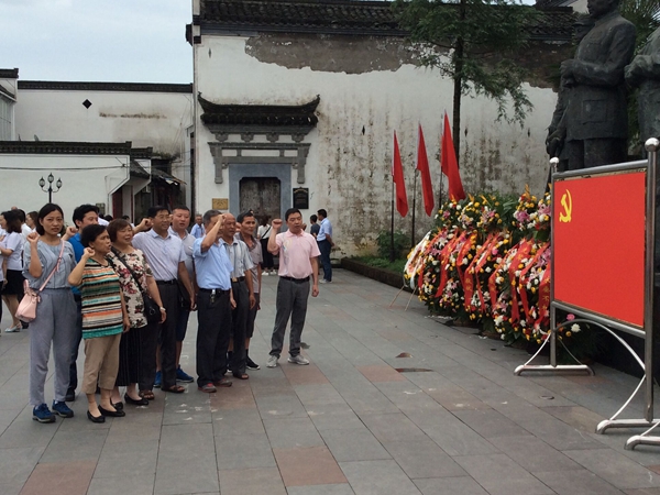 7月1日上午,在中國共產(chǎn)黨建黨95周年之際,績溪縣公司全體黨員及入黨積極分子在新四軍整編地、東進(jìn)抗日出征地─巖寺─新四軍軍部舊址紀(jì)念館前,緬懷革命先烈,開展集體莊嚴(yán)宣誓,共同慶祝黨的生日。