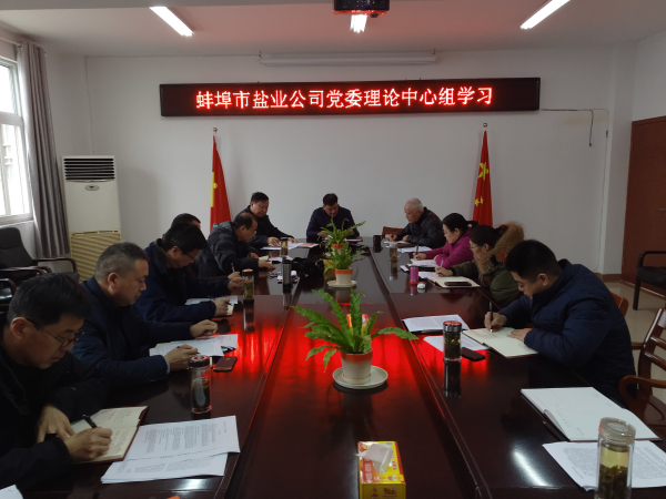 3月19日,蚌埠市鹽業(yè)公司黨委召開中心組理論學(xué)習(xí)會議,會議由黨委書記邱軍主持,黨委班子成員參加會議,中層以上干部和縣公司主要負(fù)責(zé)人列席會議。