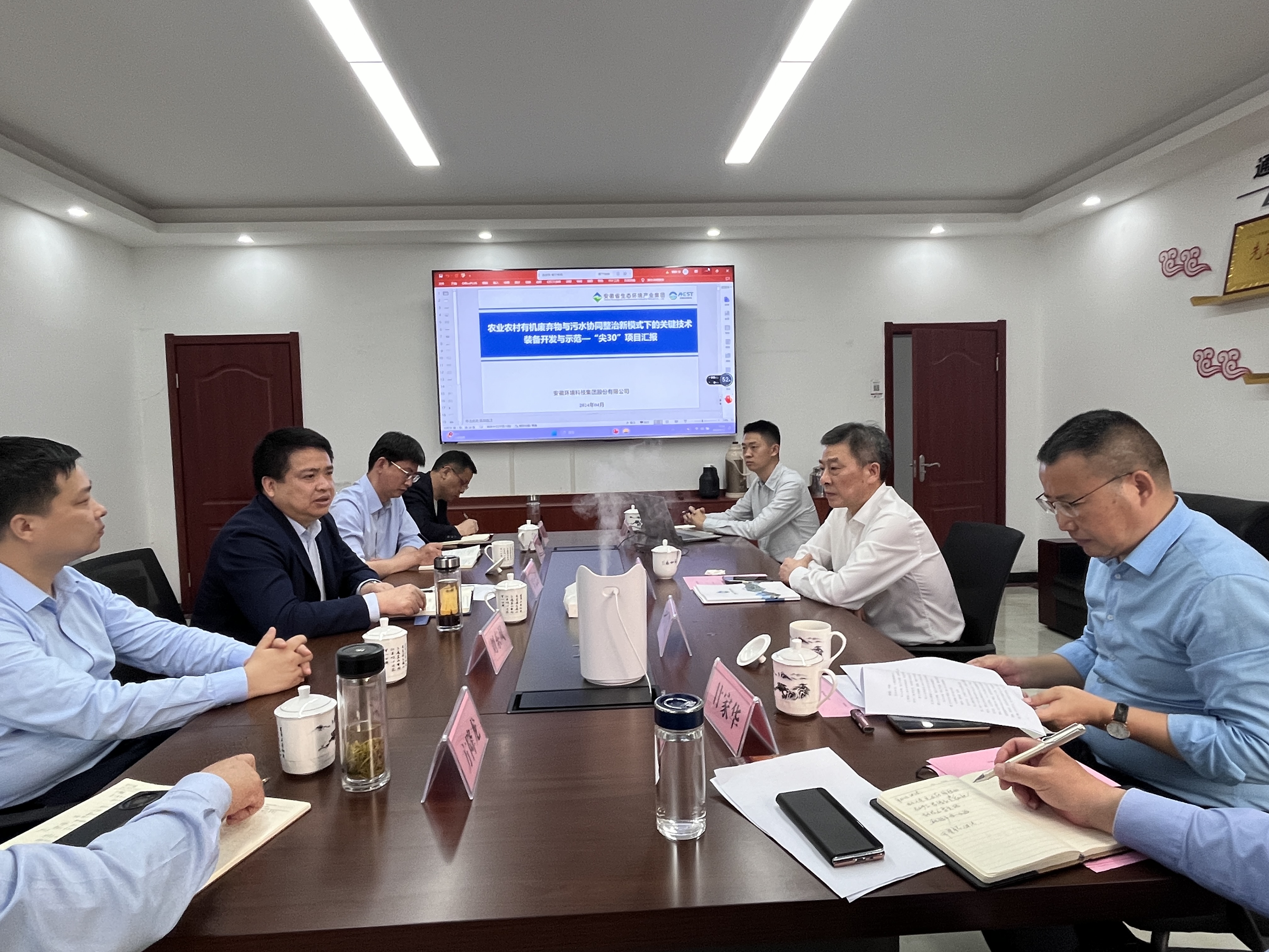 4月13日,省生態(tài)環(huán)境集團(tuán)黨委書(shū)記、董事長(zhǎng)羅太忠到環(huán)境科技集團(tuán)“尖30”課題項(xiàng)目太湖中試基地調(diào)研。調(diào)研中,羅太忠一行深入項(xiàng)目現(xiàn)場(chǎng),認(rèn)真聽(tīng)取項(xiàng)目負(fù)責(zé)人匯報(bào),詳細(xì)了解項(xiàng)目進(jìn)度、技術(shù)合作、產(chǎn)業(yè)示范推廣等方面的工作。羅太忠對(duì)“尖30”項(xiàng)目在過(guò)去一年里圍繞科技創(chuàng)新、示范應(yīng)用等方面取得的成績(jī)給予充分肯定。他指出,未來(lái)要充分發(fā)揮集團(tuán)平臺(tái)優(yōu)勢(shì),持續(xù)加強(qiáng)與中國(guó)科學(xué)技術(shù)大學(xué)科技創(chuàng)新的合作力度,力爭(zhēng)在農(nóng)業(yè)農(nóng)村有機(jī)廢棄物資源化利用上實(shí)現(xiàn)模式創(chuàng)新,打造特色亮點(diǎn)。