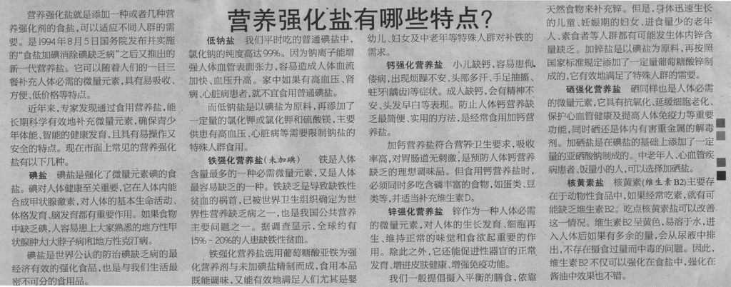 《市場星報》:營養(yǎng)強(qiáng)化鹽有哪些特點