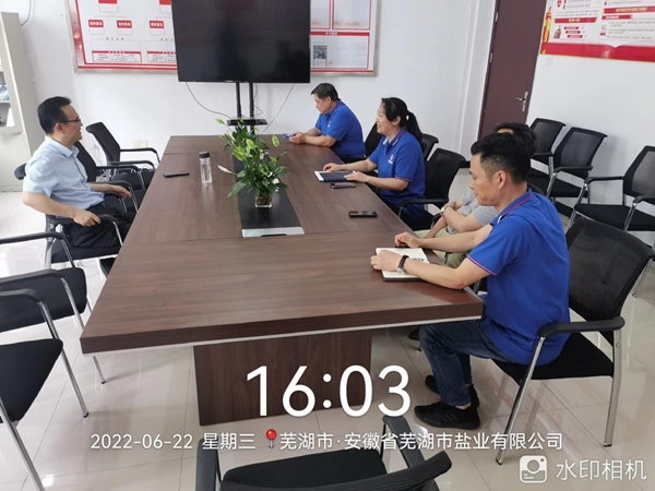 2022年6月22日,集團(tuán)公司黨委委員、副總經(jīng)理,鹽業(yè)發(fā)展公司黨委書記、董事長(zhǎng)王奇赴蕪湖市鹽業(yè)公司檢查安全生產(chǎn)工作。
