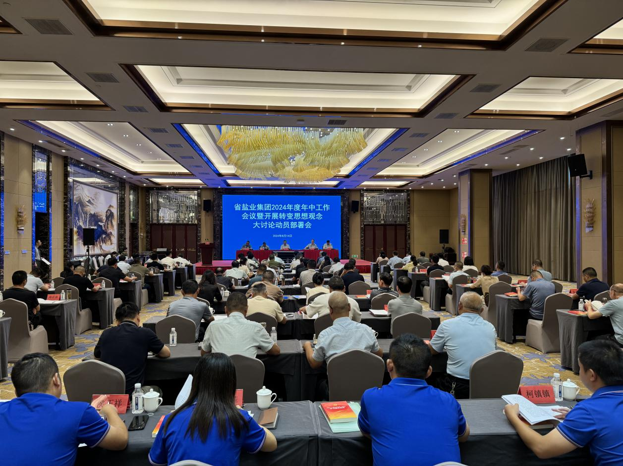 8月14日下午,省鹽業(yè)集團召開2024年度年中工作會議暨開展轉(zhuǎn)變思想大討論動員部署會,省鹽業(yè)集團黨委書記、董事長宇豐出席會議并講話,省鹽業(yè)集團黨委委員、副總經(jīng)理(主持日常經(jīng)營工作),合肥市鹽業(yè)公司黨委書記、董事長、經(jīng)理張鷹主持會議。會議傳達了省生態(tài)環(huán)境集團2024年度年中工作會議精神及羅太忠書記對鹽板塊的有關(guān)要求,通報了省鹽業(yè)集團2024年上半年黨建、經(jīng)營、黨風廉政建設(shè)等工作情況,解讀了《全省鹽業(yè)系統(tǒng)轉(zhuǎn)變思想觀念大討論工作方案》,對下一階段重點工作進行了安排部署,部分單位圍繞新業(yè)務開展進行了交流發(fā)言。
