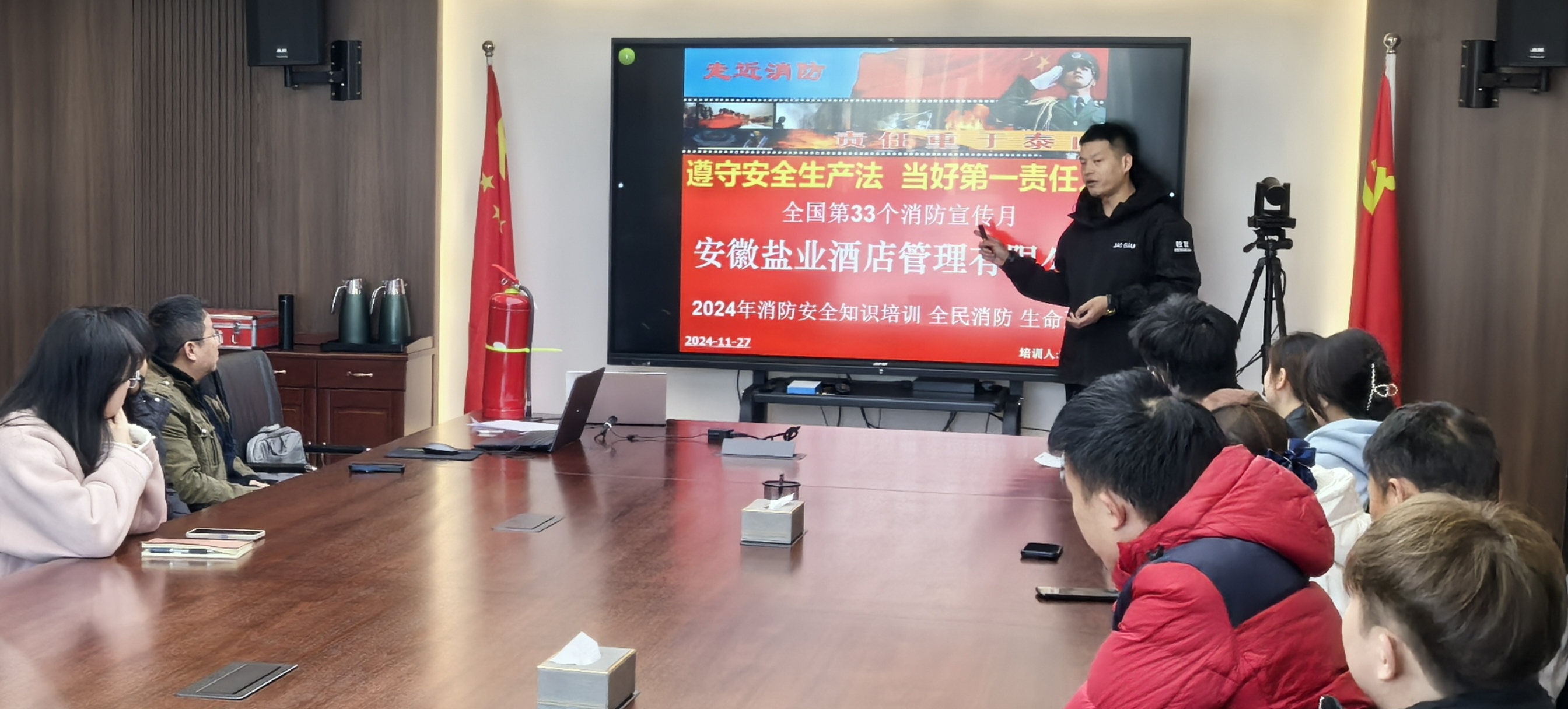 活動中,酒店公司邀請省消防協(xié)會專業(yè)教官講解火災(zāi)預(yù)防、火情處置、火場逃生等事項,現(xiàn)場操作消防器材進行救火流程示范,并觀看2024安全警示片《危險降臨》。重點提升了緊急情況下的人員疏散逃生、初期火災(zāi)及現(xiàn)場的應(yīng)急處置能力,防止火災(zāi)事故擴大,保障人員人身安全和財產(chǎn)免受重大損失。